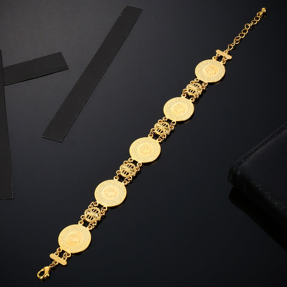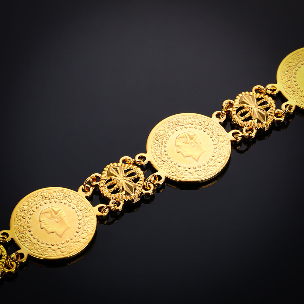 Completarea perfectă a oricărui outfit, această curea aurie cu banuți, cunoscută sub numele de "Golden Coins", adaugă un element de strălucire și eleganță. Fiecare detaliu al acestei curele este meticulos lucrat pentru a evidenția frumusețea și bogăția aurului. Fie că o porți la ocazii speciale sau pentru a-ți adăuga un strop de glamour unei ținute de zi cu zi, această curea atrage cu siguranță priviri admirative. Designul său clasic și sofisticat este îmbunătățit de banuții aurii care adaugă un plus de farmec și stil.